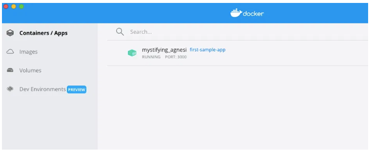 Now open the Docker Desktop application, and in the Container section, you will see a new docker container is listed.