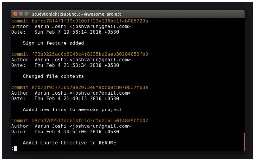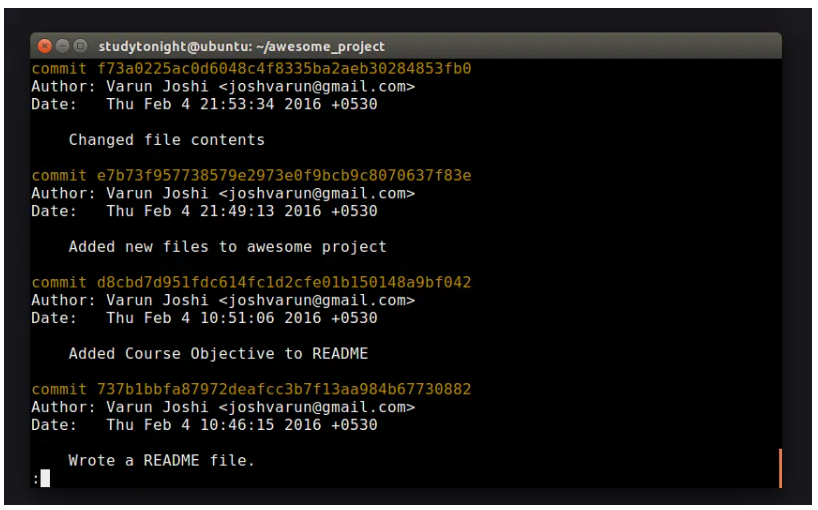 Go ahead and make a new file, file4 in this case and commit it. After you have successfully committed it, check the log. Certainly, you see the entry of the new commit sitting there.