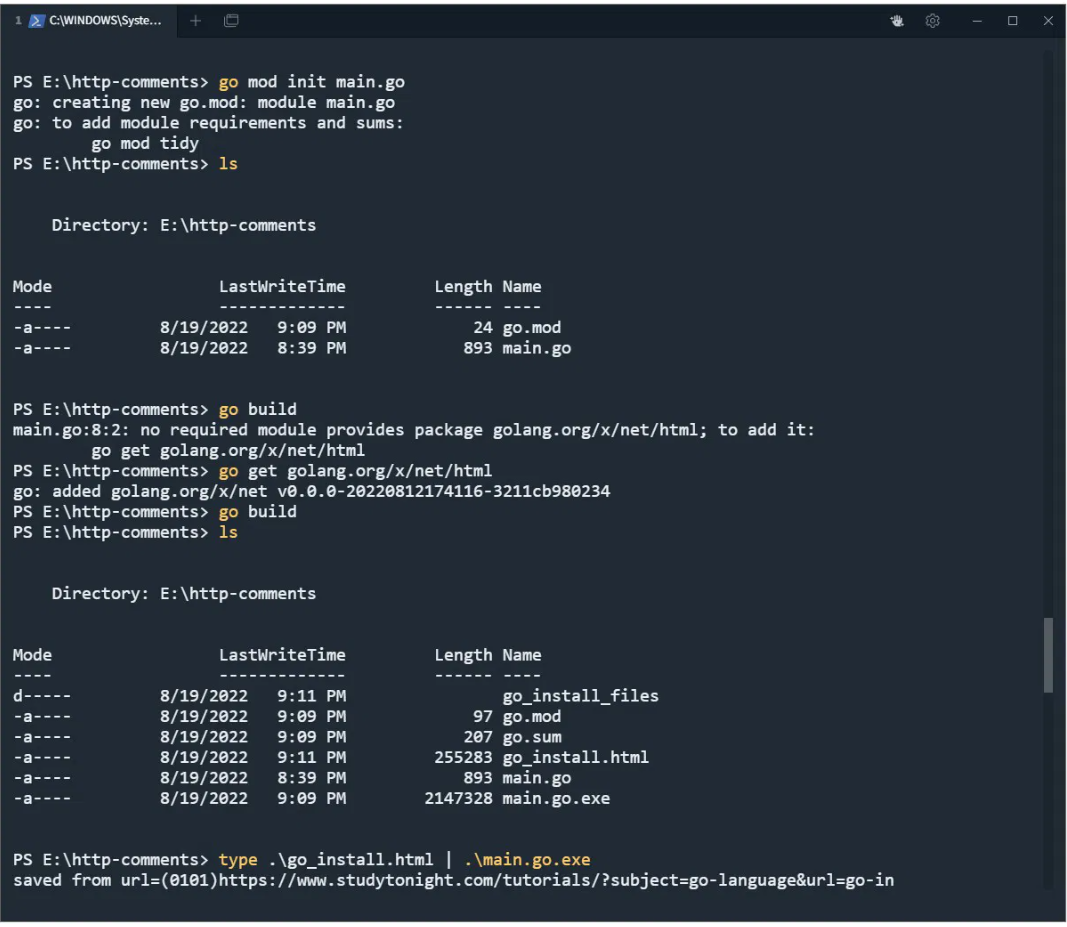 fmt- To print extracted html comments.os- To read HTML files from standard input (stdin)strings- To manipulate UTF-8 encoded strings.golang.org/x/net/html- To implement an HTML5-compliant tokenizer and parser.